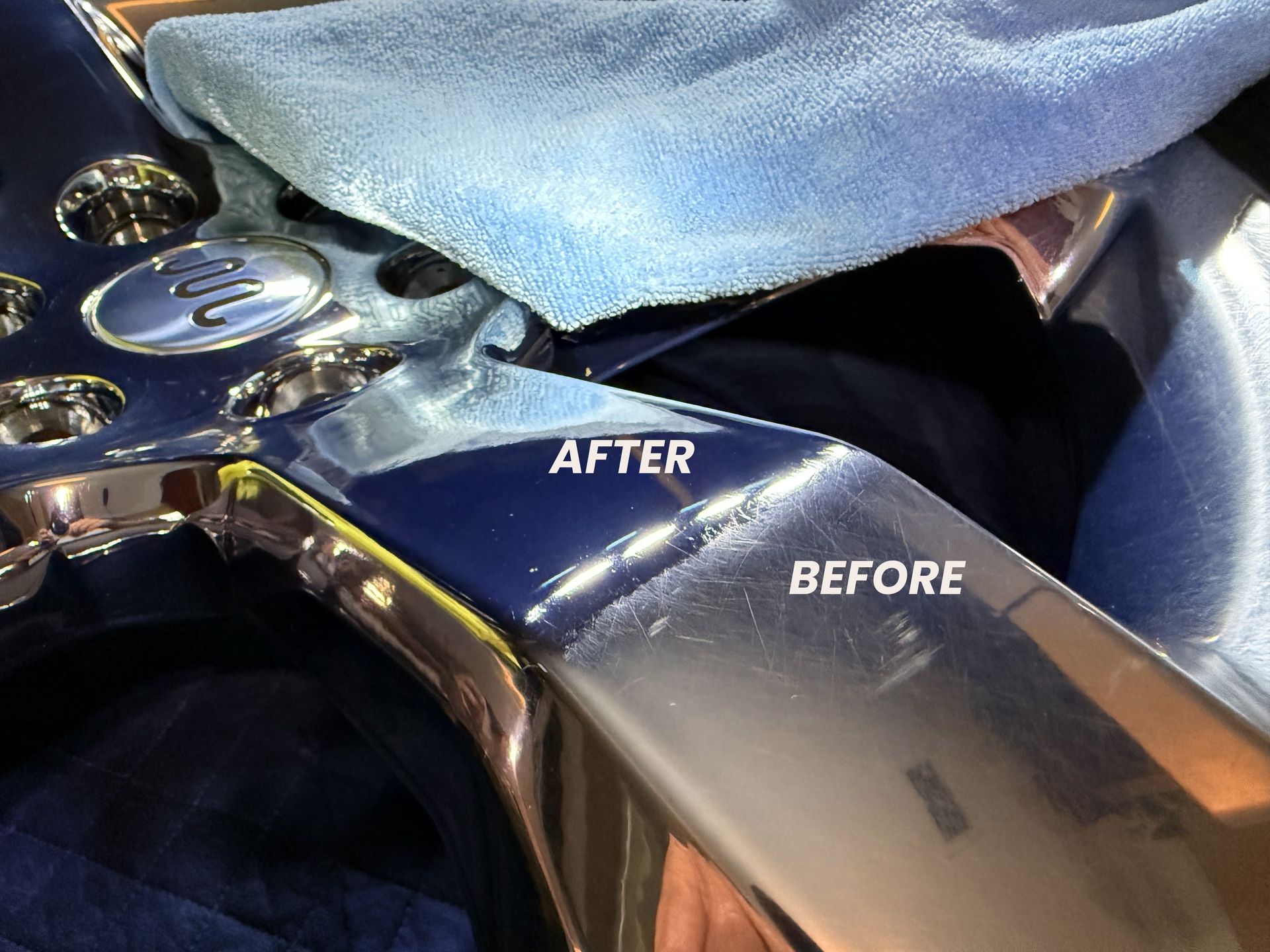 We hand wash your vehicle and thoroughly detail the exterior from top to bottom, and we decontaminate the paint using clay bar & iron removal products.